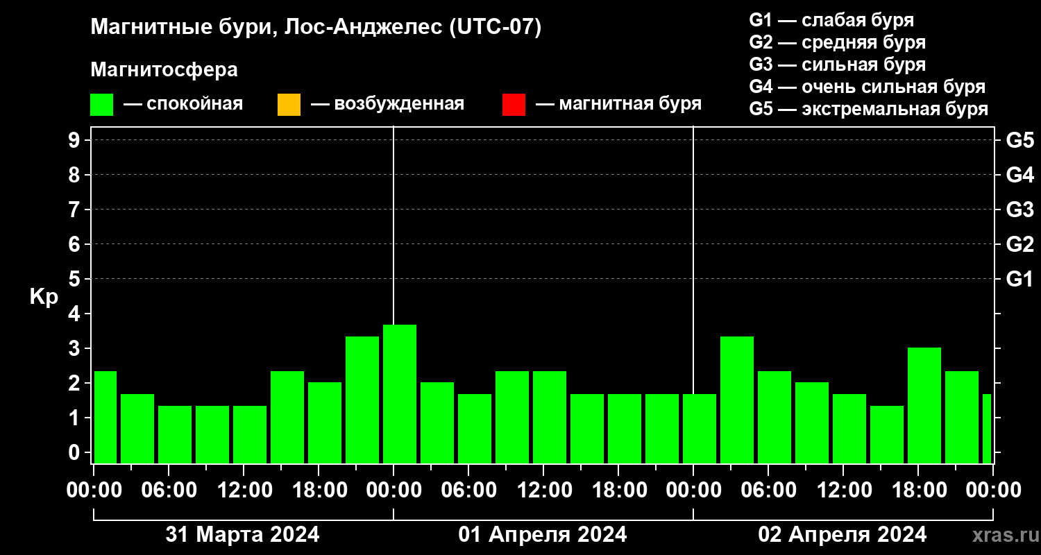 Магнитные бури в Лос-Анджелесе — 2 апреля 2024 года