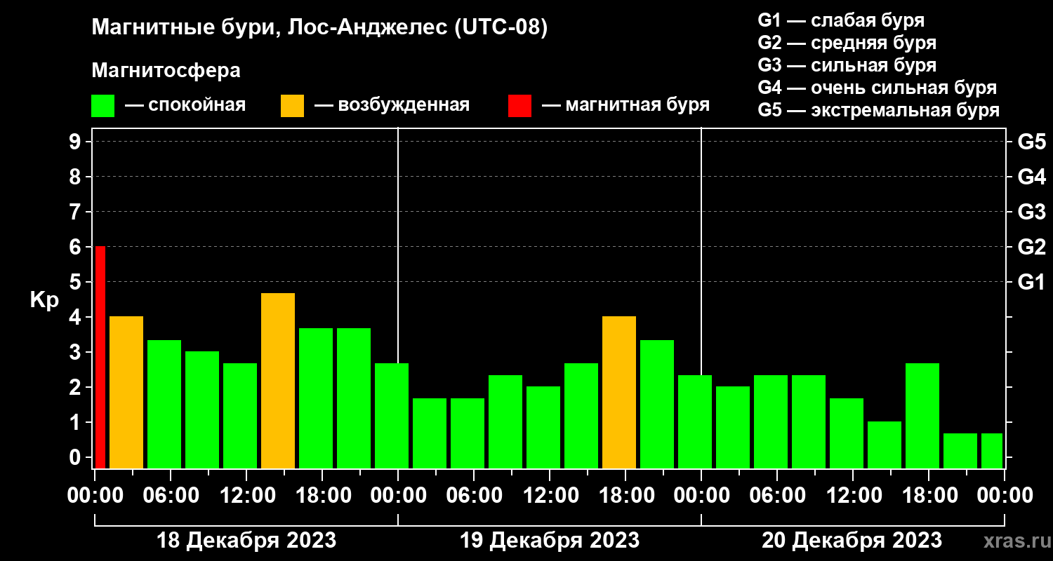 Магнитные бури в Лос-Анджелесе 20 декабря 2023 года