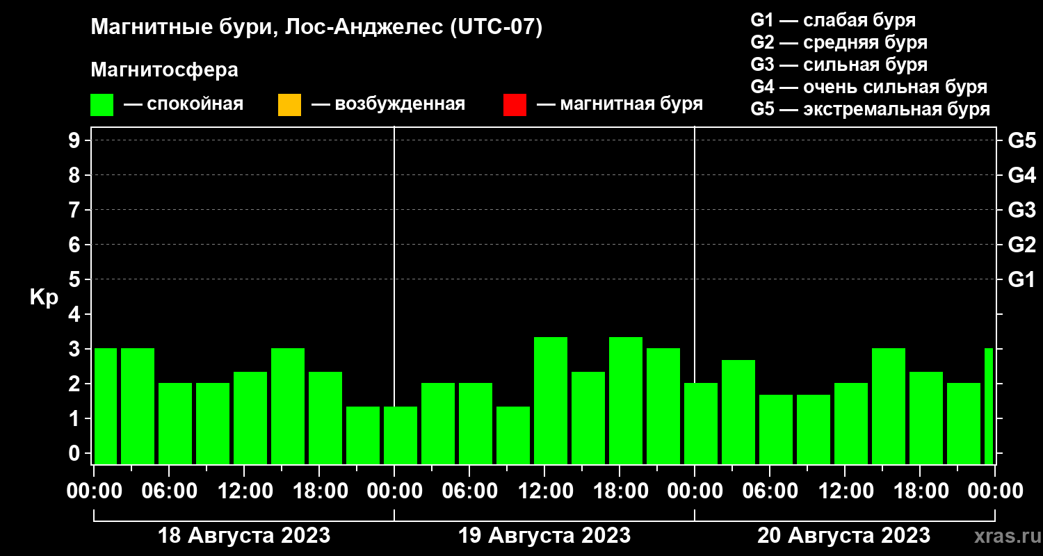 Магнитные бури в Лос-Анджелесе — 20 августа 2023 года