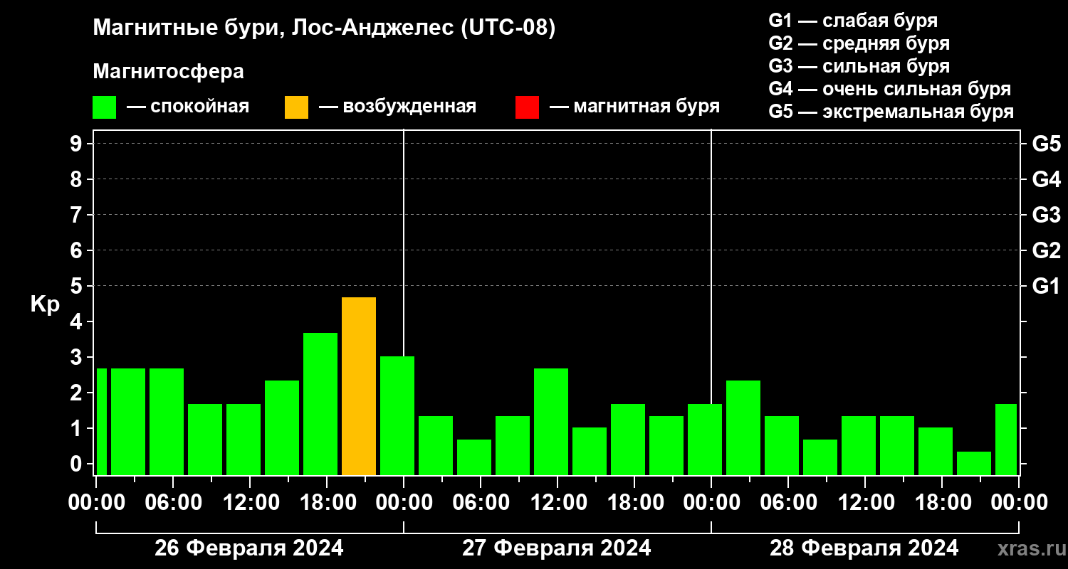 Магнитные бури в Лос-Анджелесе — 28 февраля 2024 года