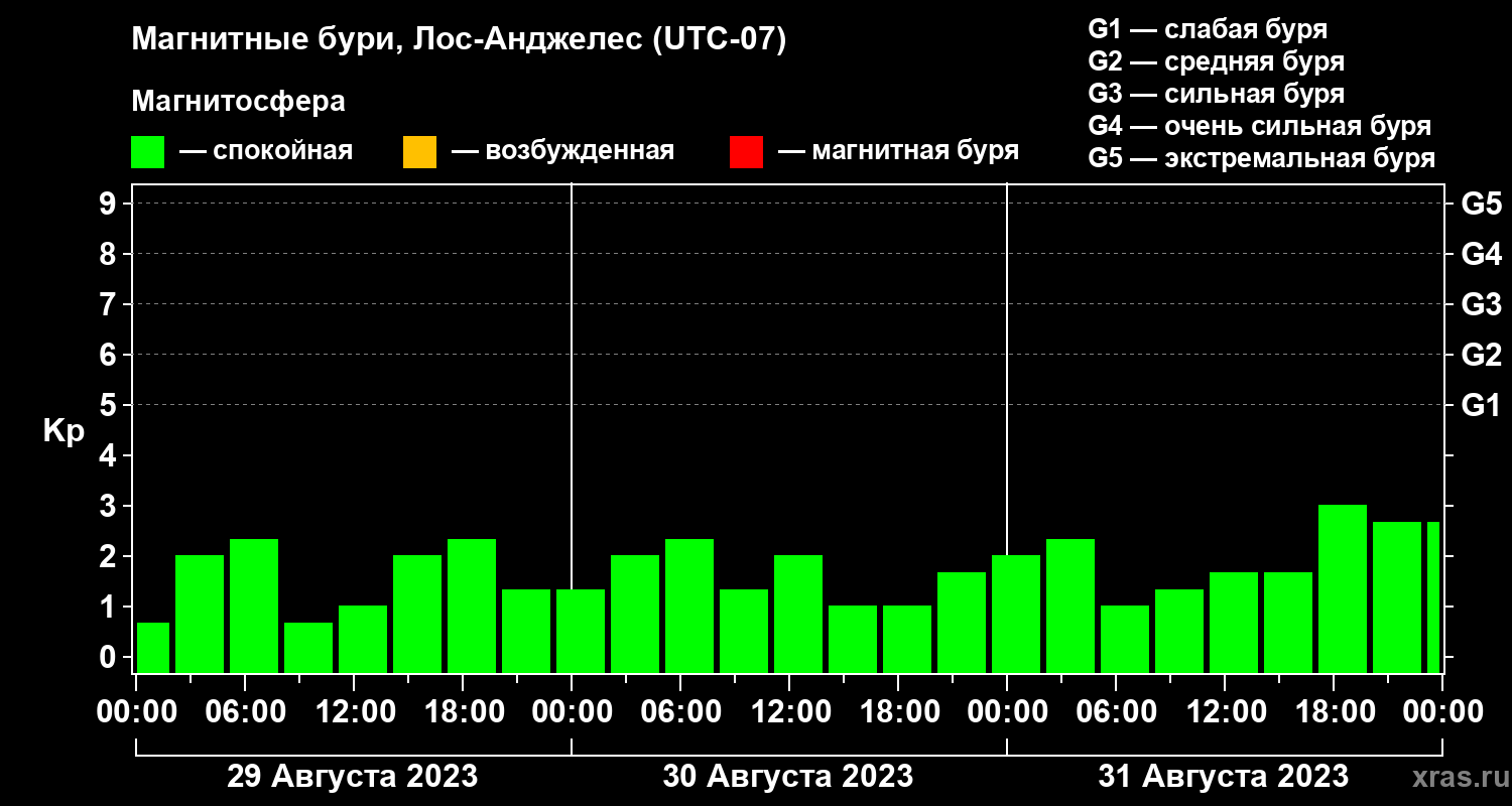 Магнитные бури в Лос-Анджелесе — 31 августа 2023 года