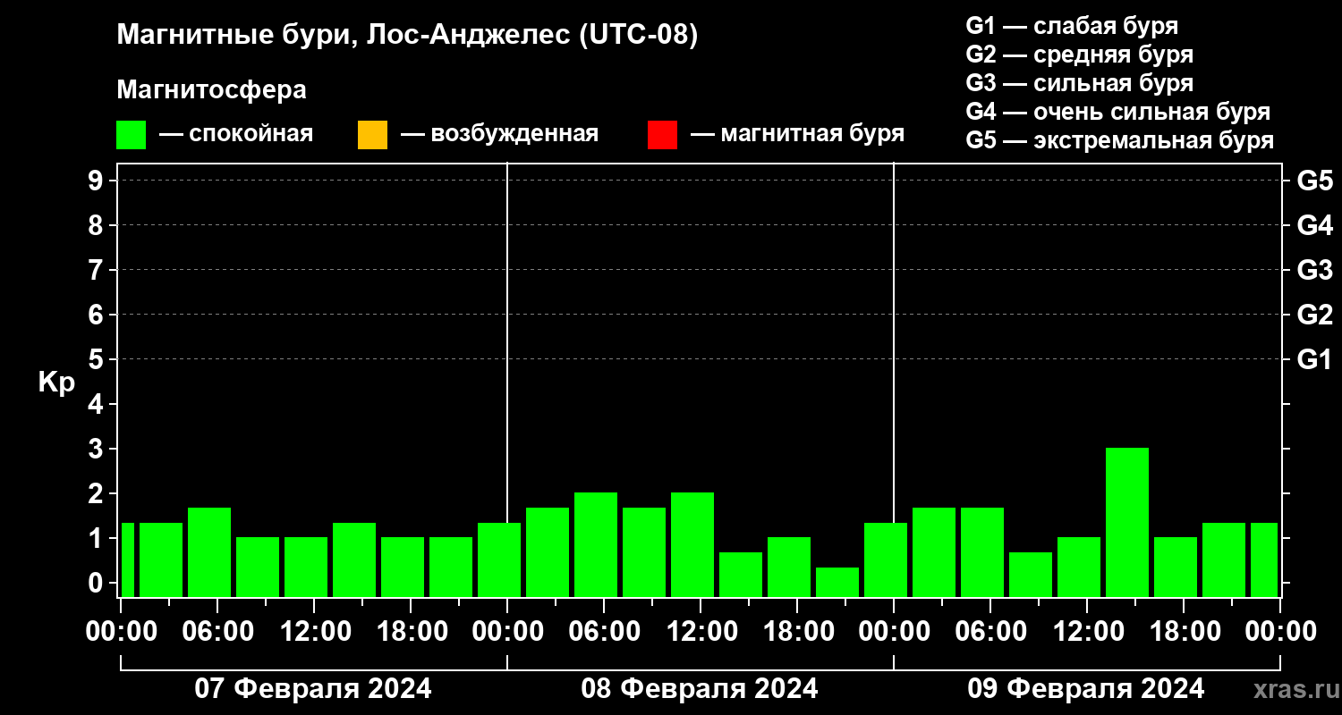 Магнитные бури в Лос-Анджелесе — 9 февраля 2024 года