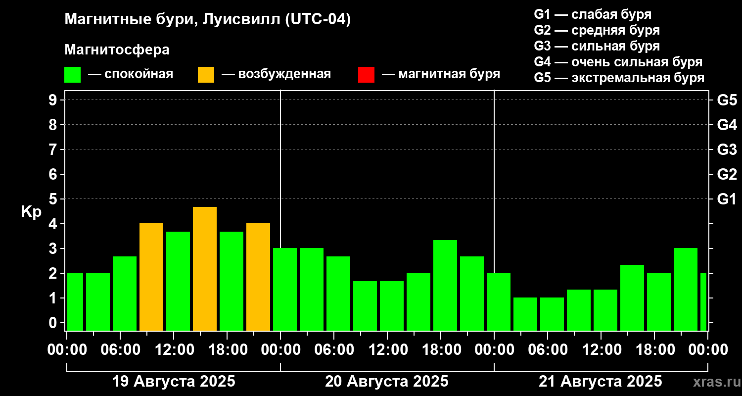 Магнитные бури в Луисвилле 21 августа 2025 года