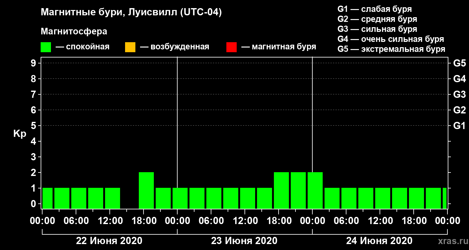 Магнитные бури в Луисвилле 24 июня 2020 года