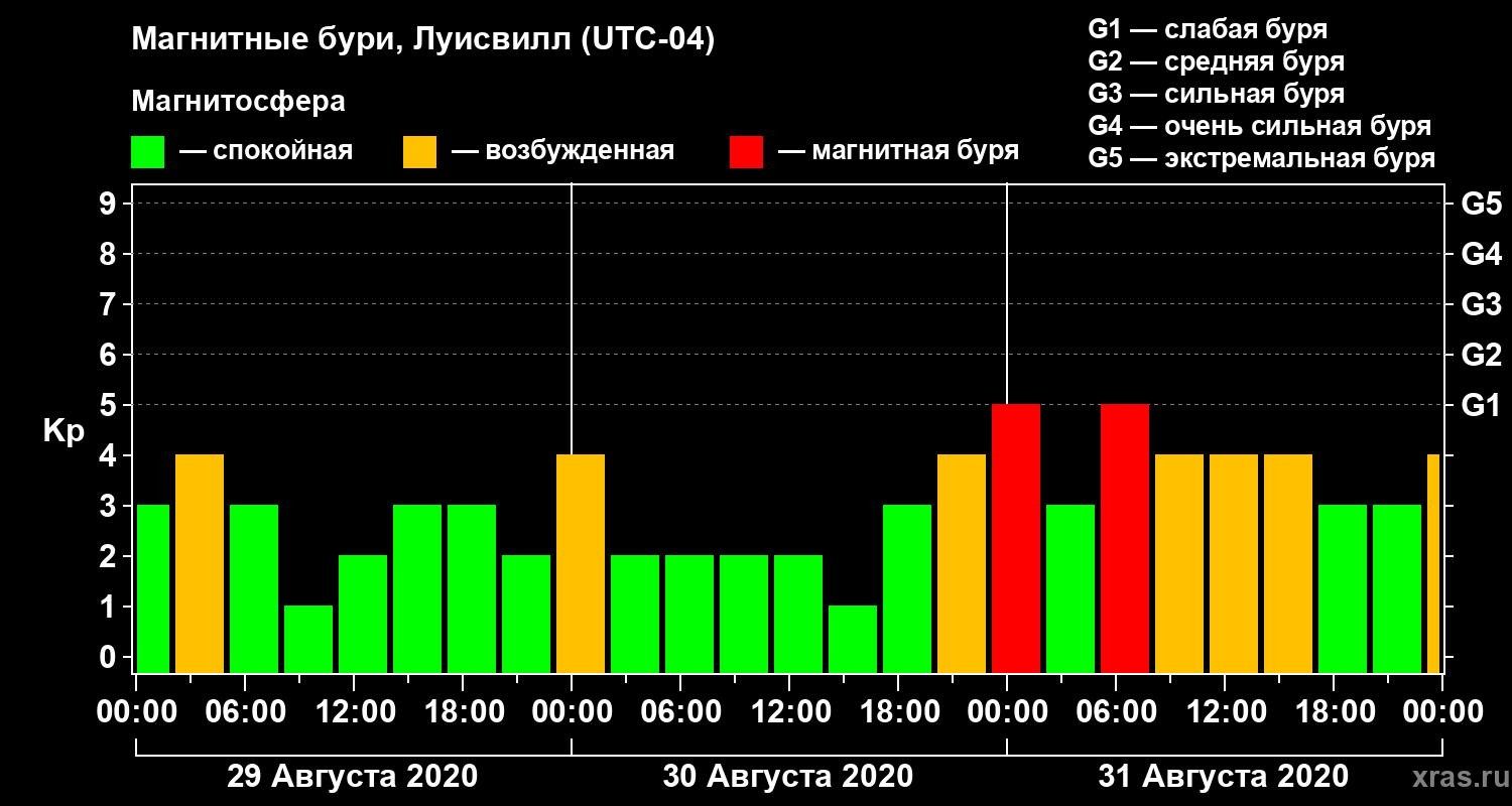 Магнитные бури в Луисвилле 31 августа 2020 года