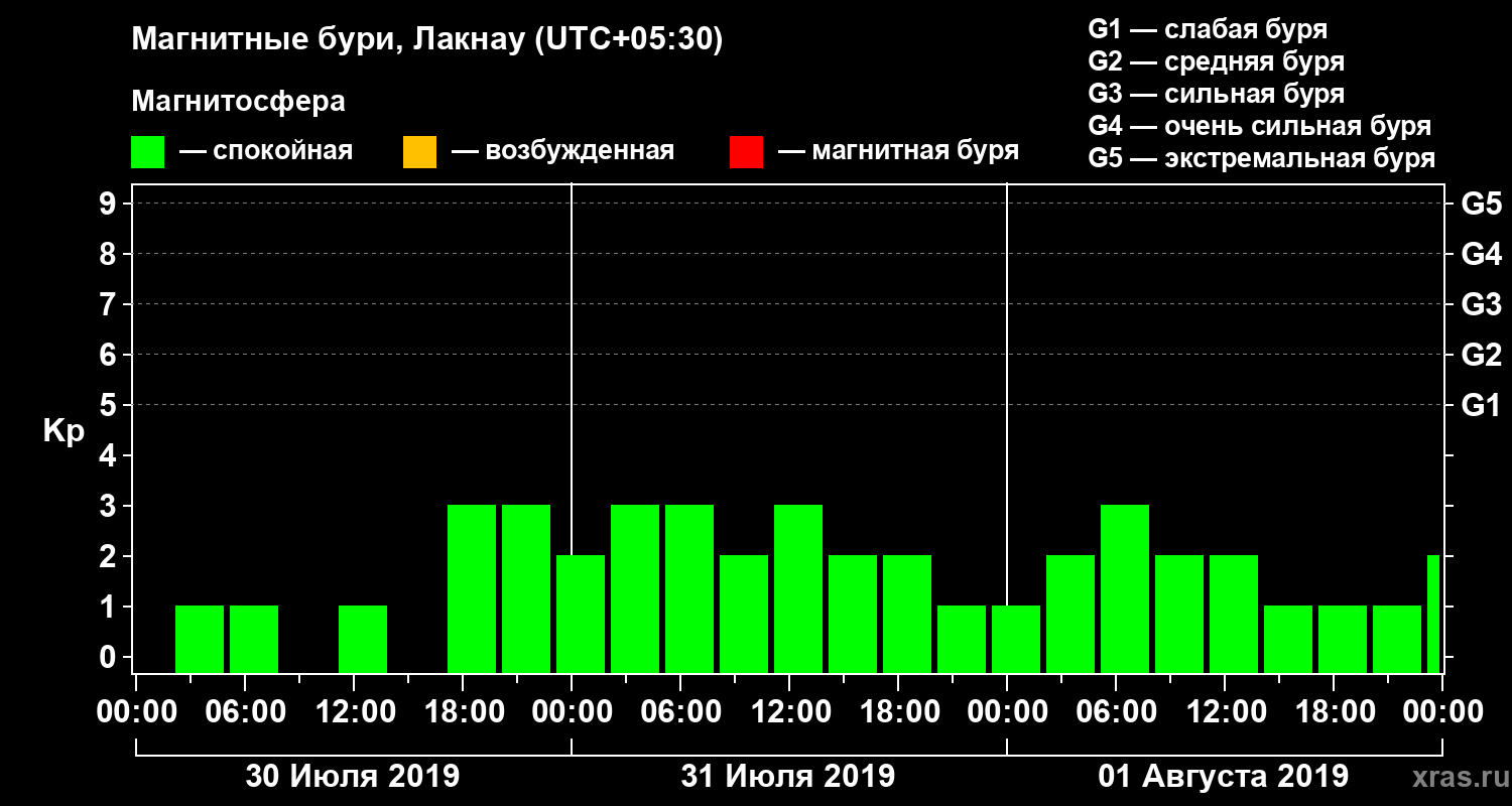Магнитные бури Лакнау 1 августа 2019 года