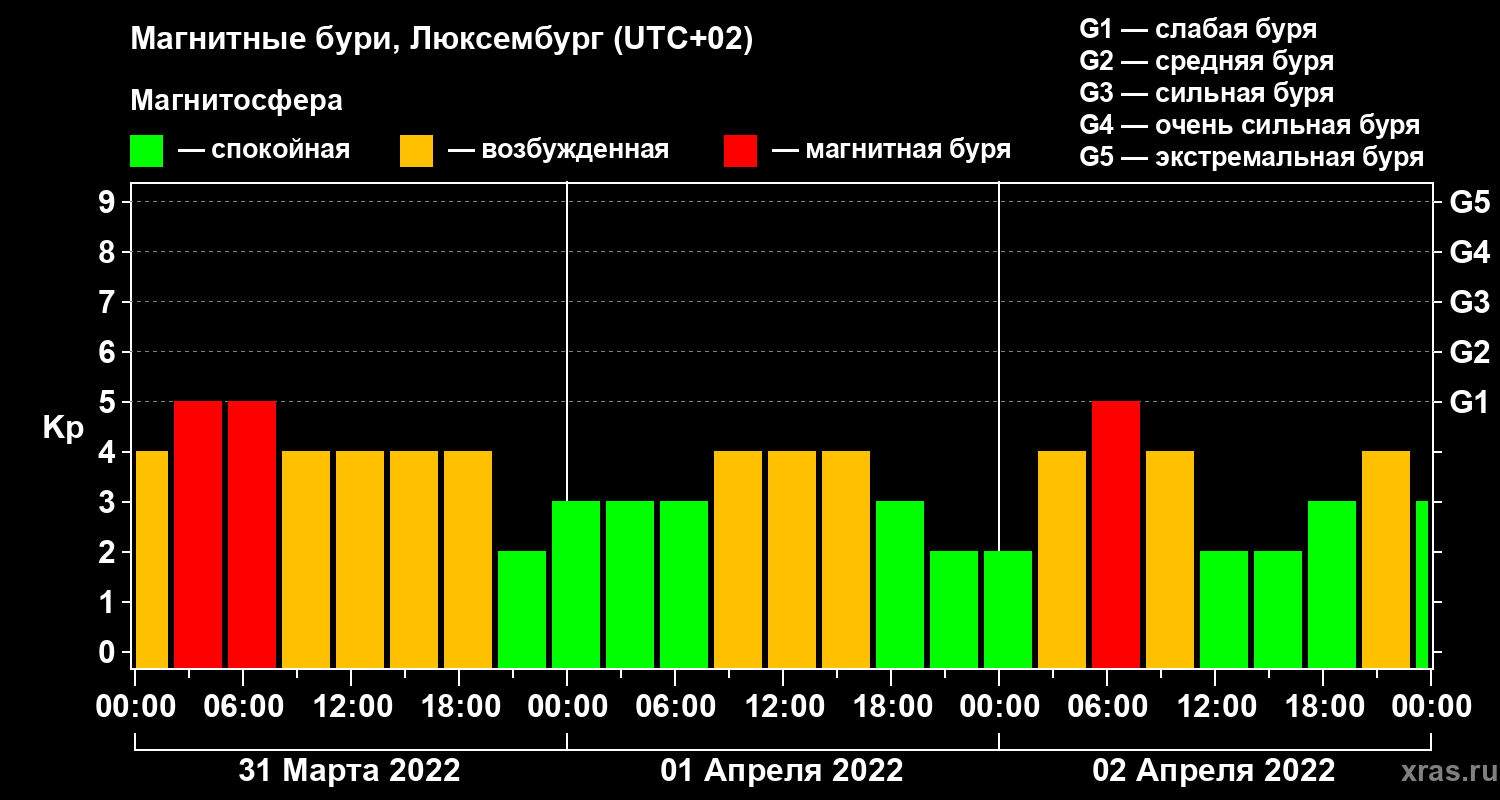 Магнитные бури в Люксембурге — 2 апреля 2022 года