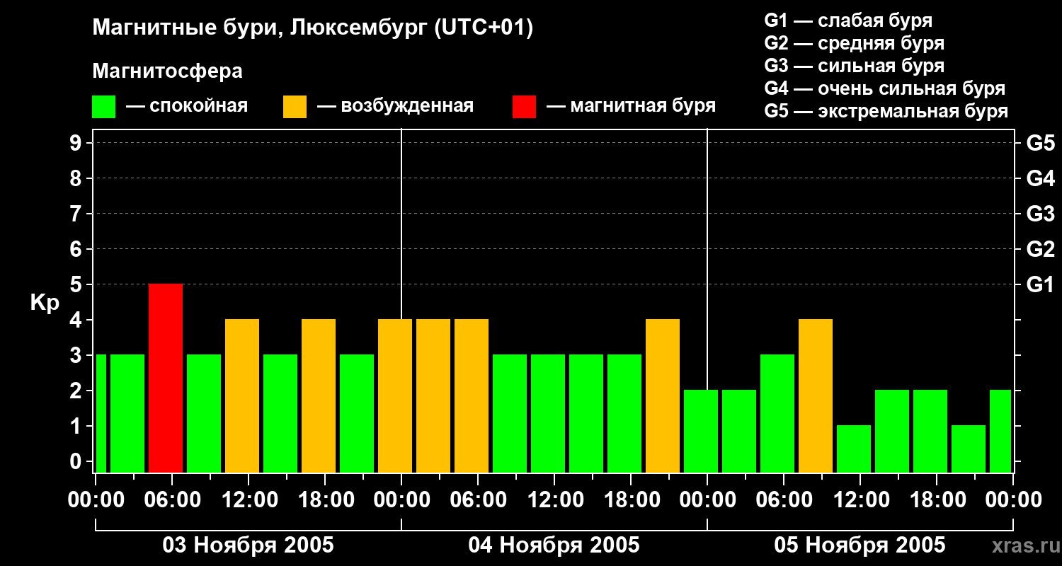 Магнитные бури в Люксембурге — 5 ноября 2005 года