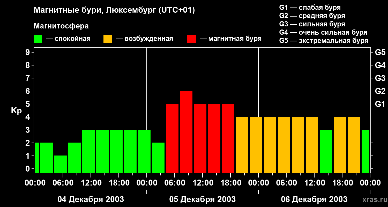 Магнитные бури в Люксембурге — 6 декабря 2003 года
