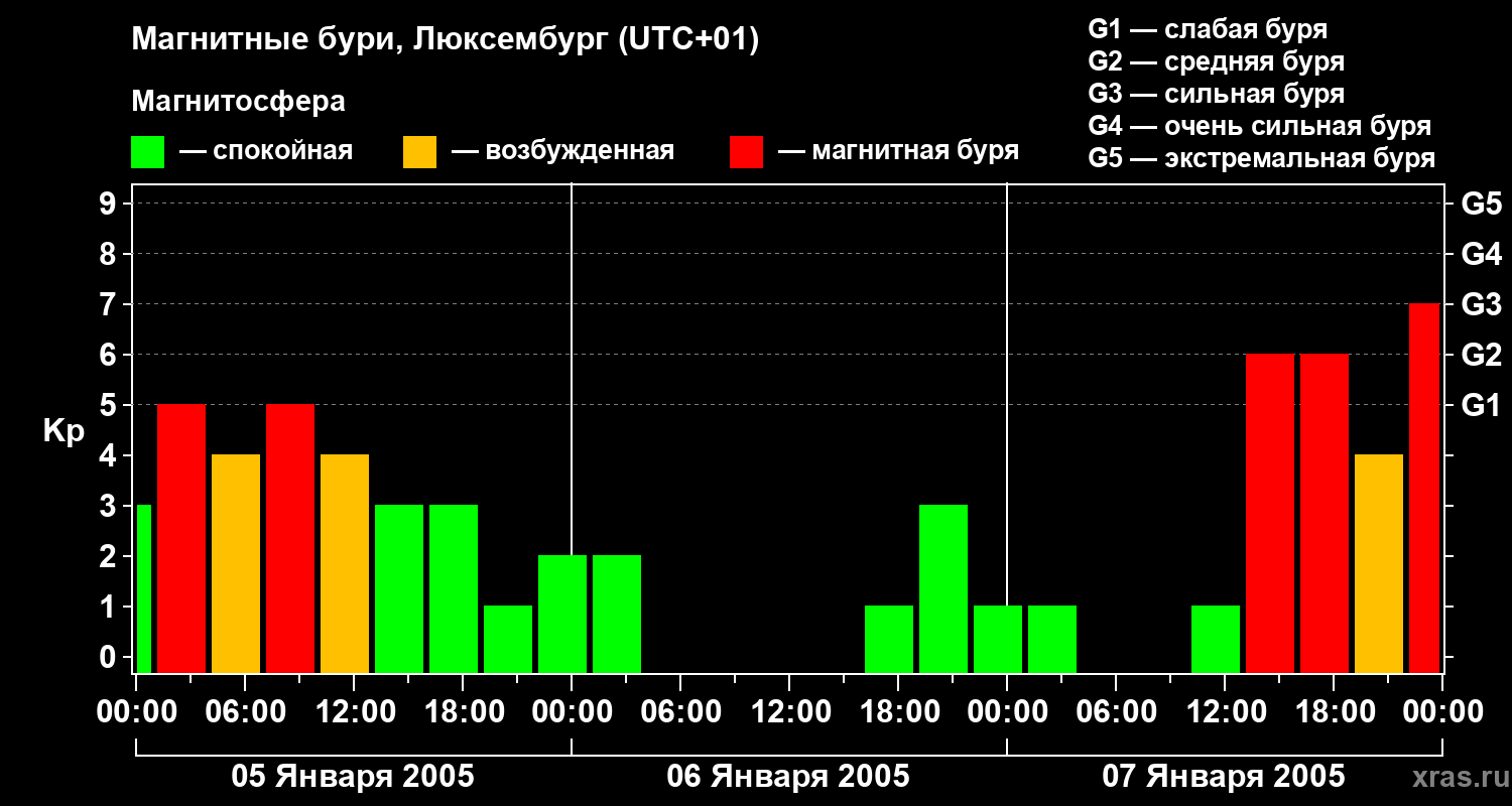 Магнитные бури в Люксембурге — 7 января 2005 года