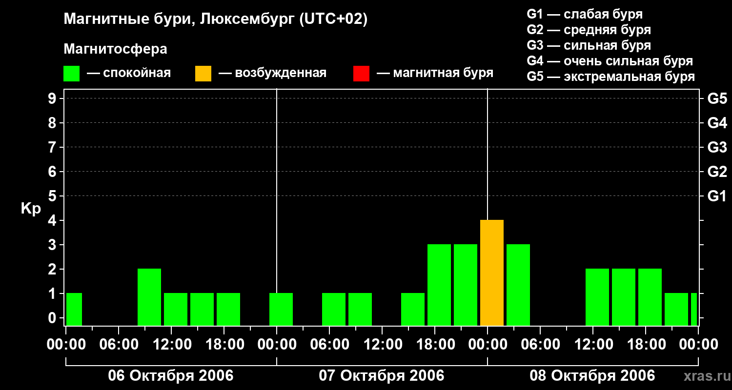 Магнитные бури в Люксембурге — 8 октября 2006 года