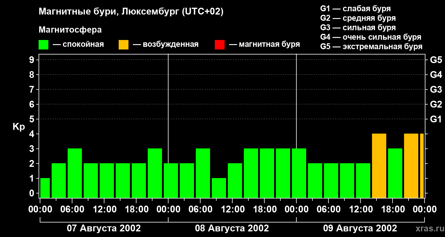 Магнитные бури в Люксембурге — 9 августа 2002 года