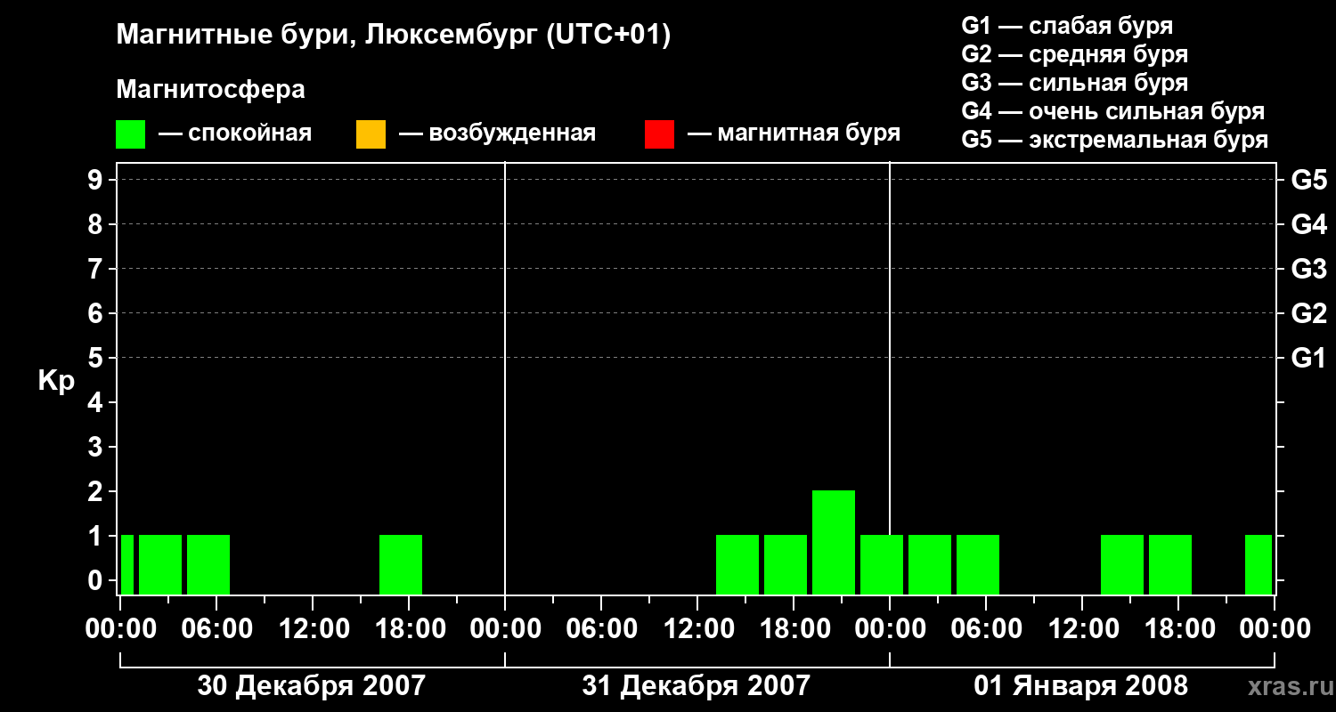 Магнитные бури в Люксембурге — 1 января 2008 года