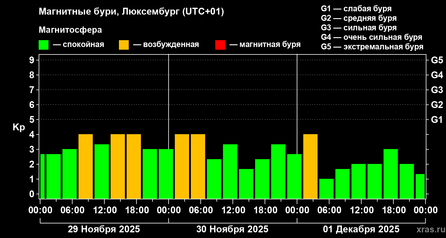 Магнитные бури в Люксембурге 1 декабря 2025 года