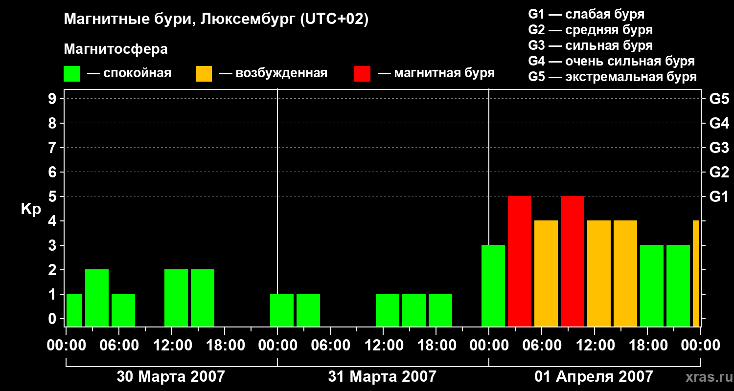 Магнитные бури в Люксембурге 1 апреля 2007 года