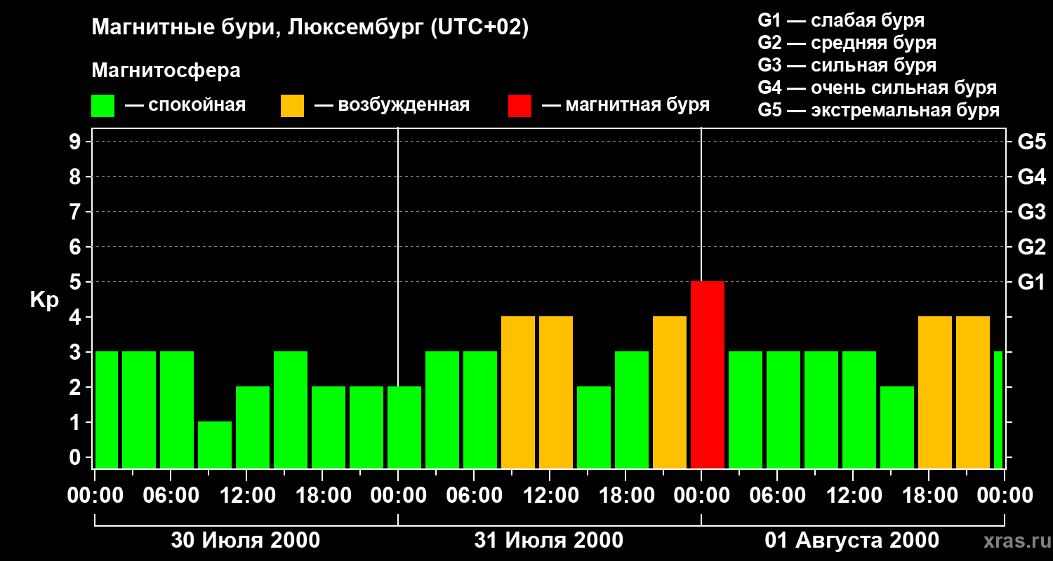 Магнитные бури в Люксембурге — 1 августа 2000 года