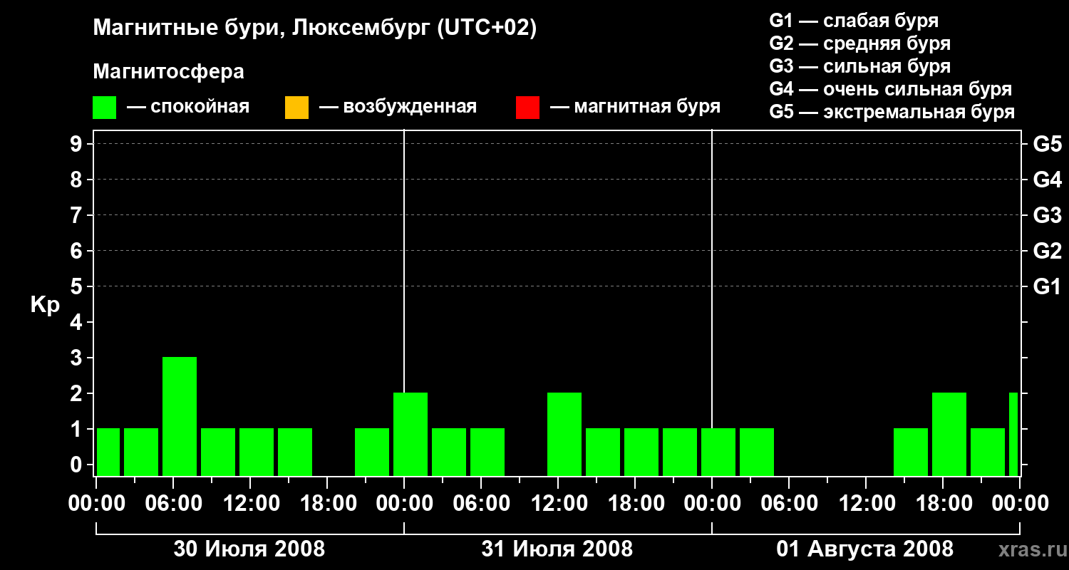 Магнитные бури в Люксембурге — 1 августа 2008 года