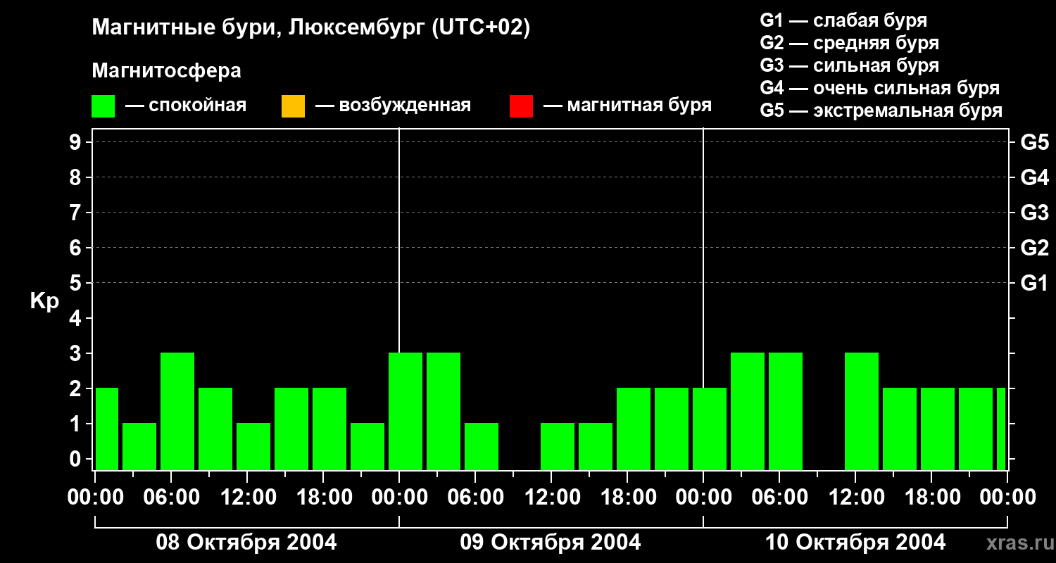 Магнитные бури в Люксембурге — 10 октября 2004 года