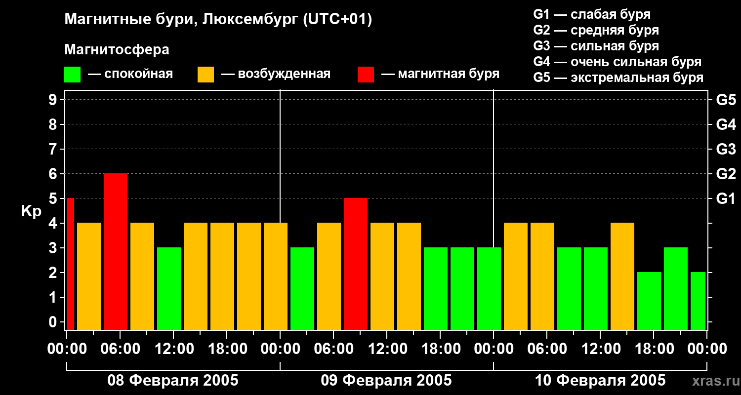 Магнитные бури в Люксембурге — 10 февраля 2005 года