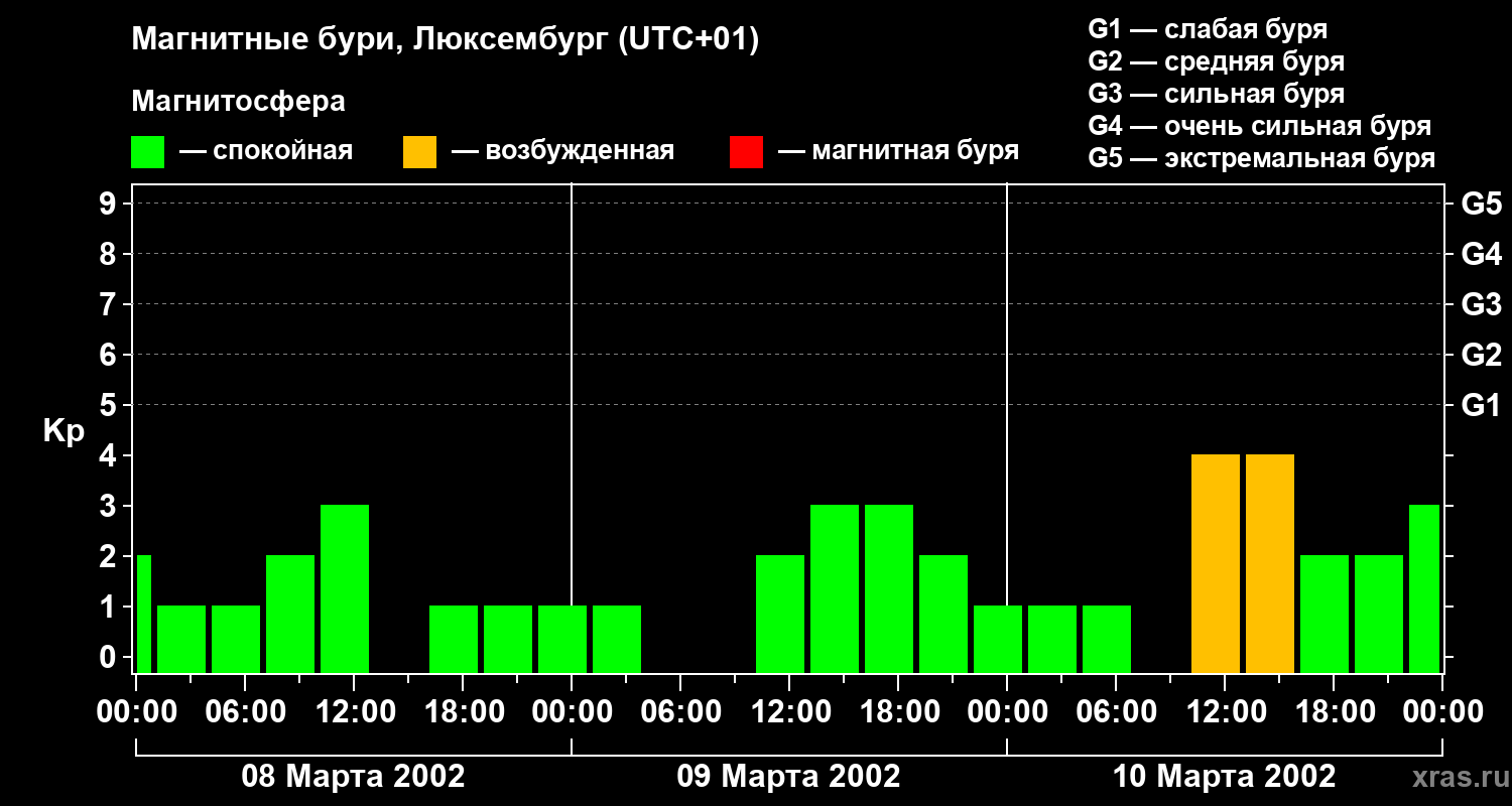 Магнитные бури в Люксембурге — 10 марта 2002 года