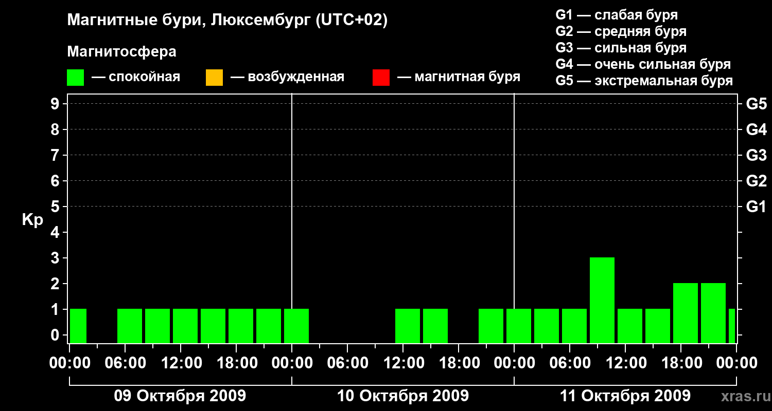 Магнитные бури в Люксембурге — 11 октября 2009 года