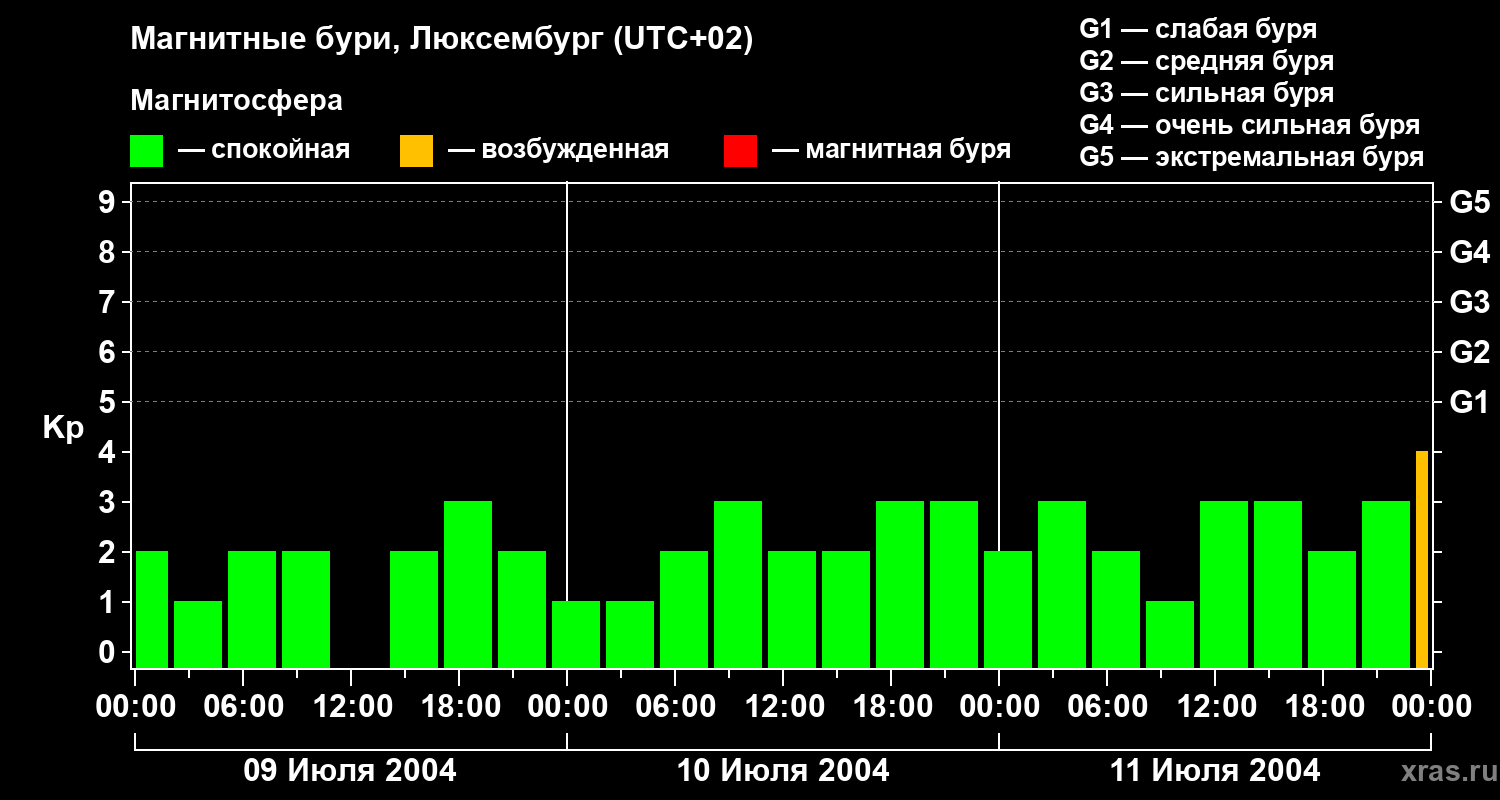 Магнитные бури в Люксембурге — 11 июля 2004 года
