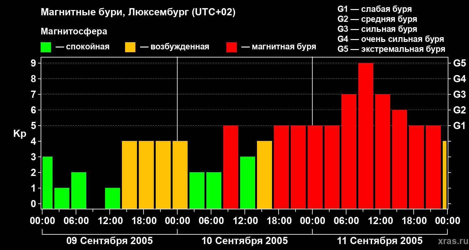 Магнитные бури в Люксембурге — 11 сентября 2005 года