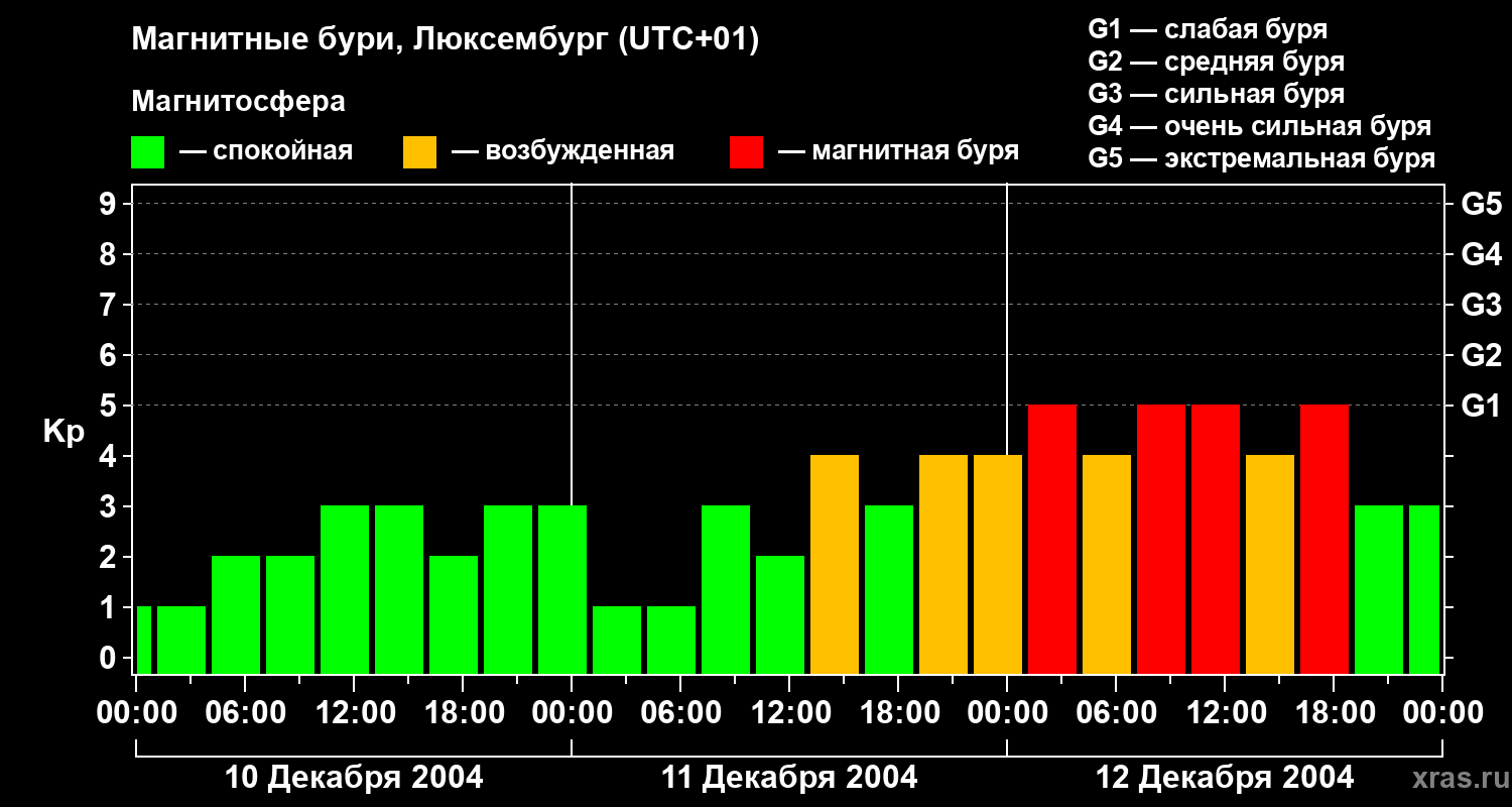 Магнитные бури в Люксембурге — 12 декабря 2004 года