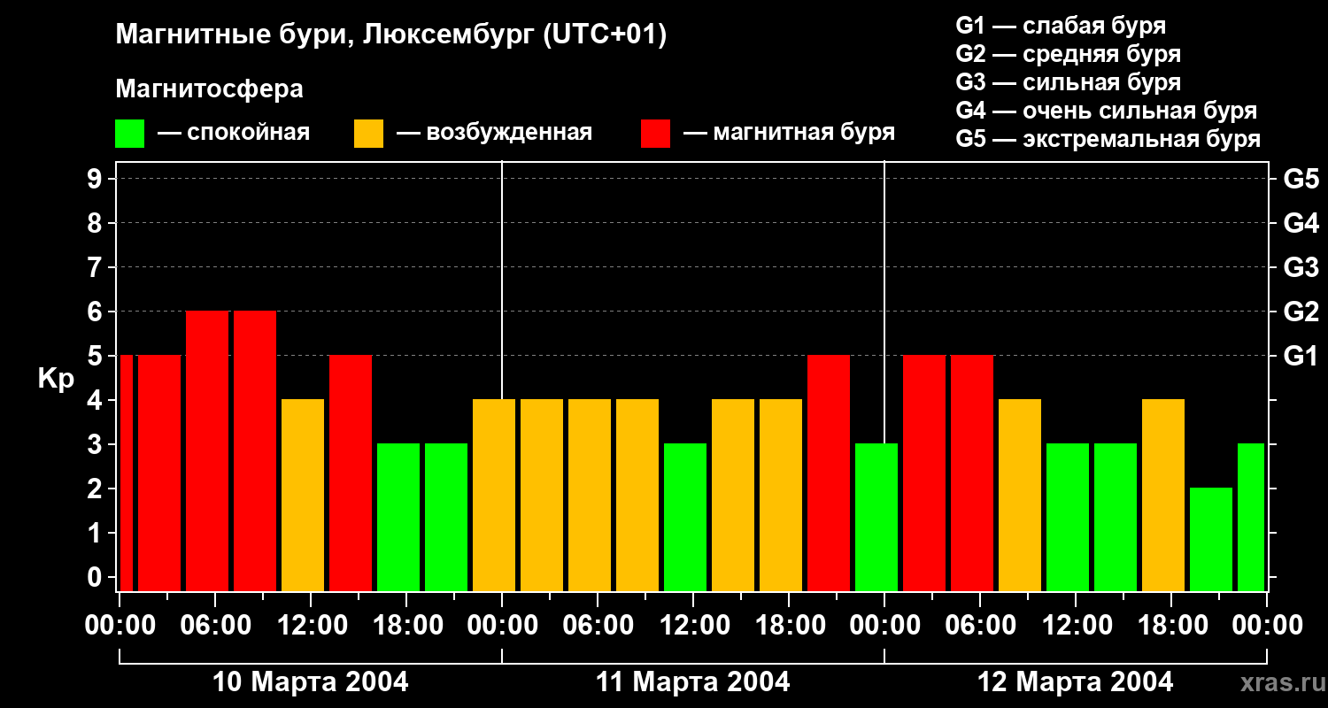 Магнитные бури в Люксембурге — 12 марта 2004 года