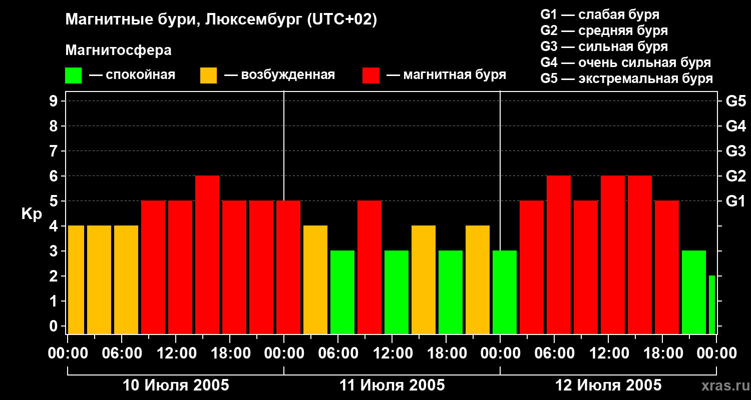 Магнитные бури в Люксембурге — 12 июля 2005 года