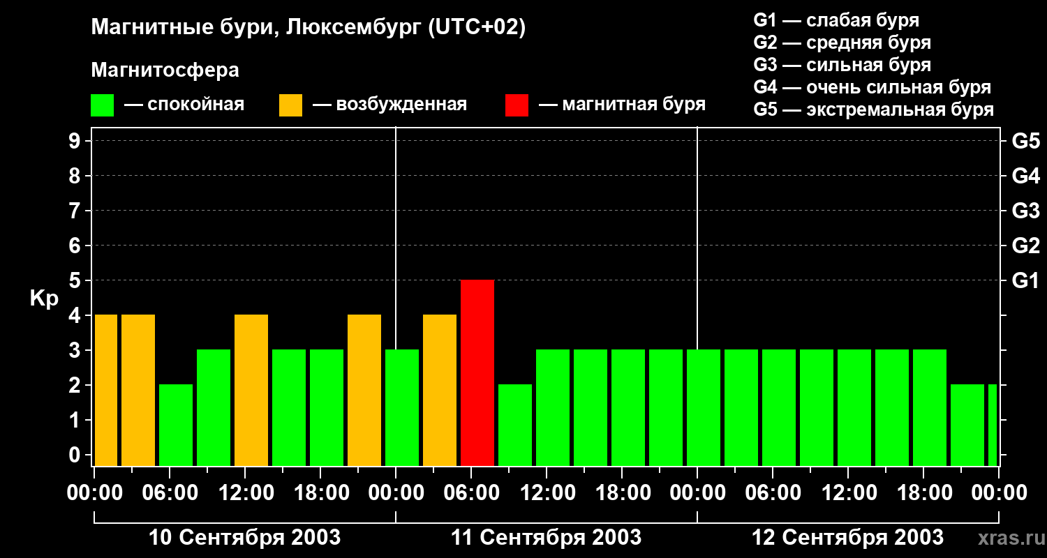 Магнитные бури в Люксембурге 12 сентября 2003 года
