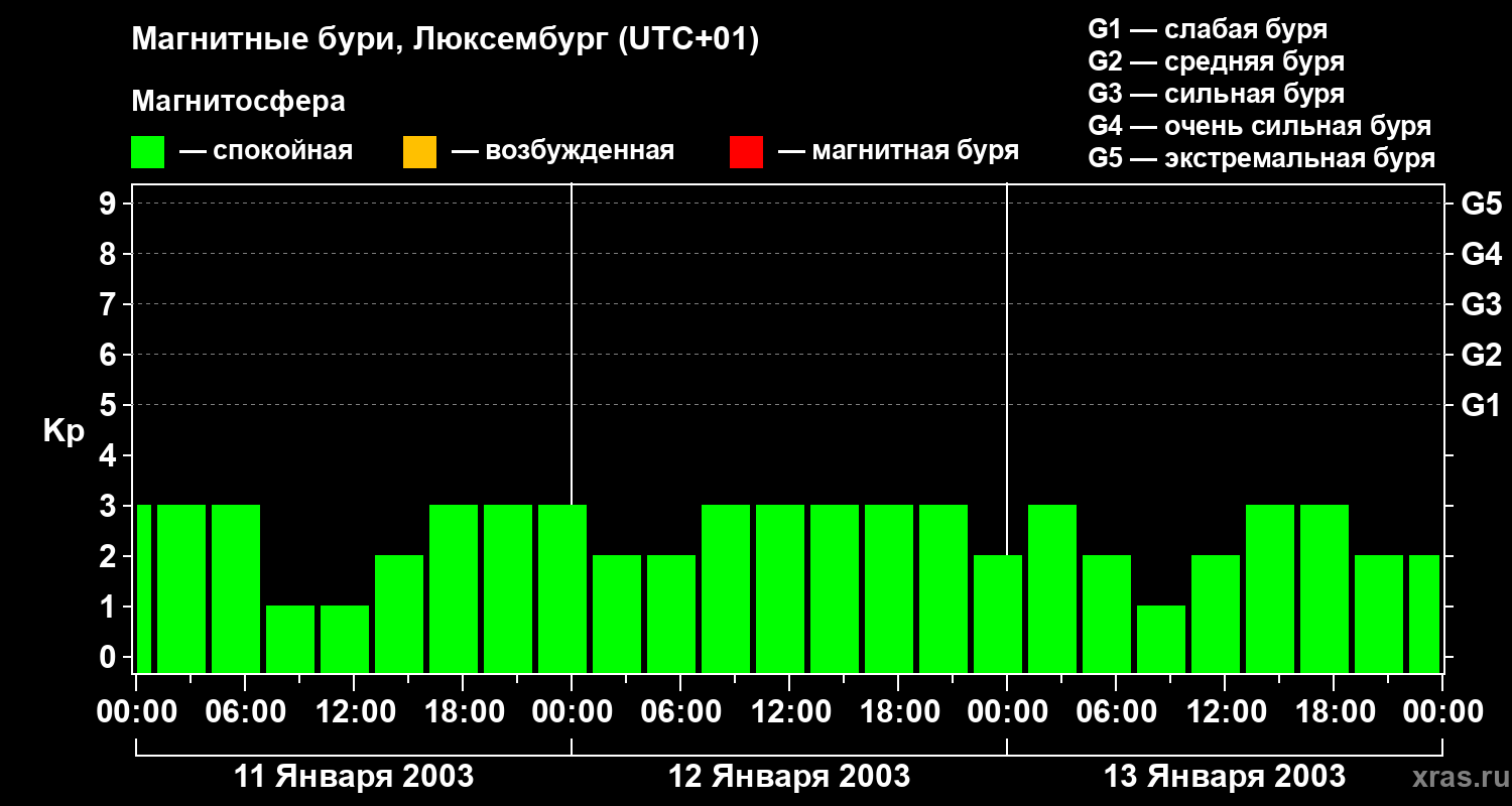 Магнитные бури в Люксембурге — 13 января 2003 года