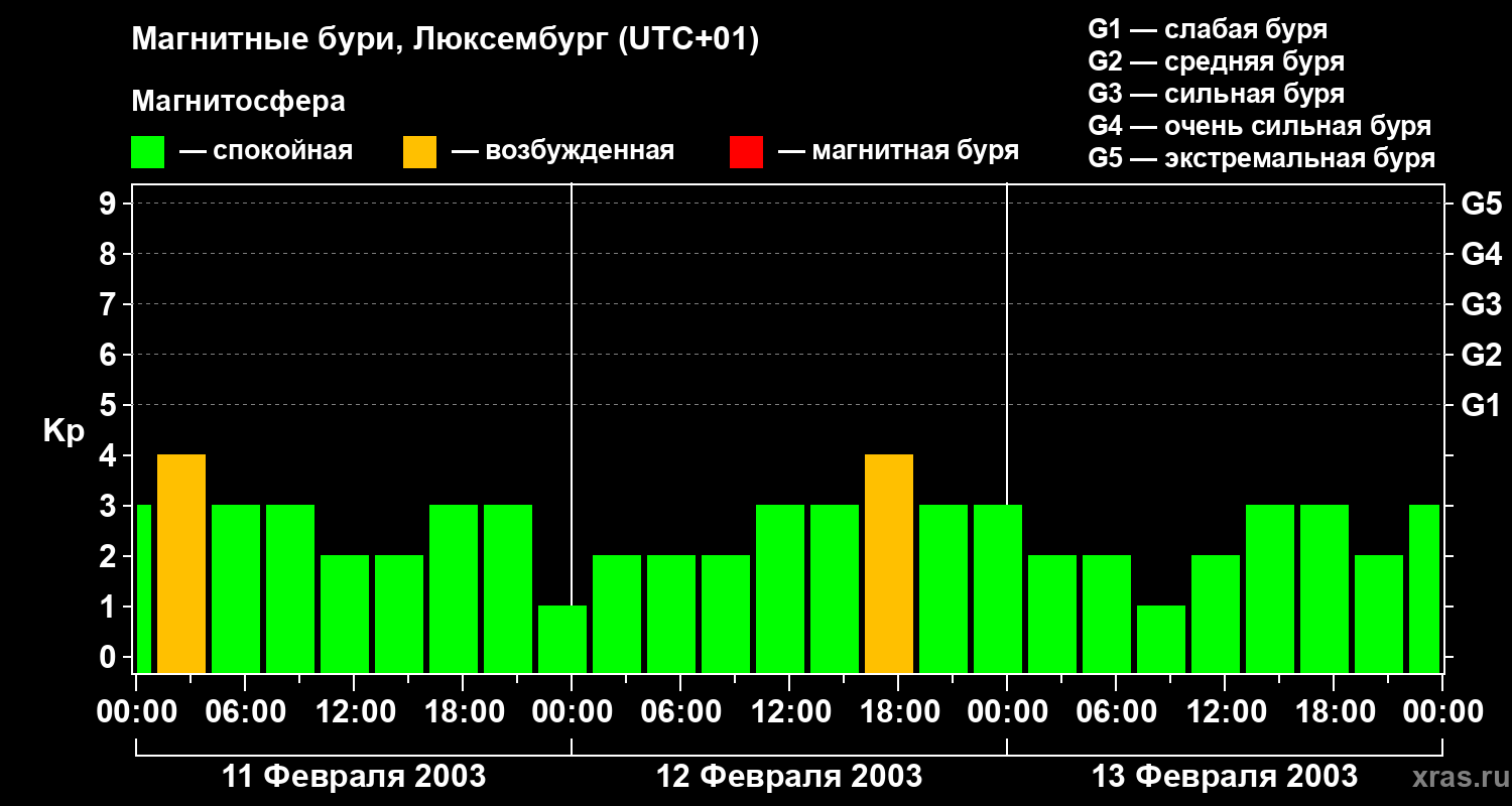 Магнитные бури в Люксембурге — 13 февраля 2003 года