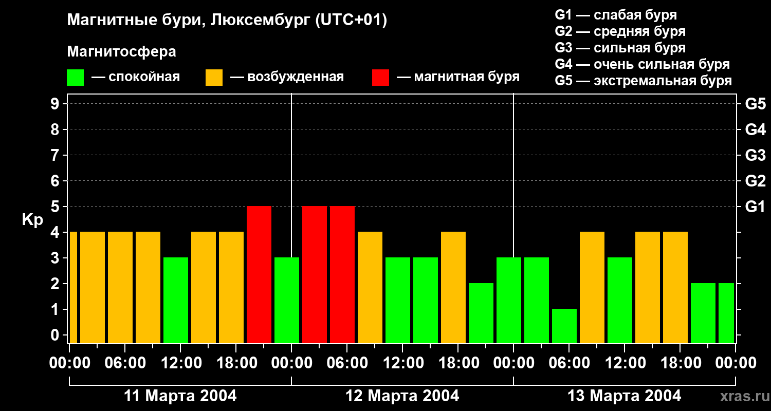 Магнитные бури в Люксембурге — 13 марта 2004 года