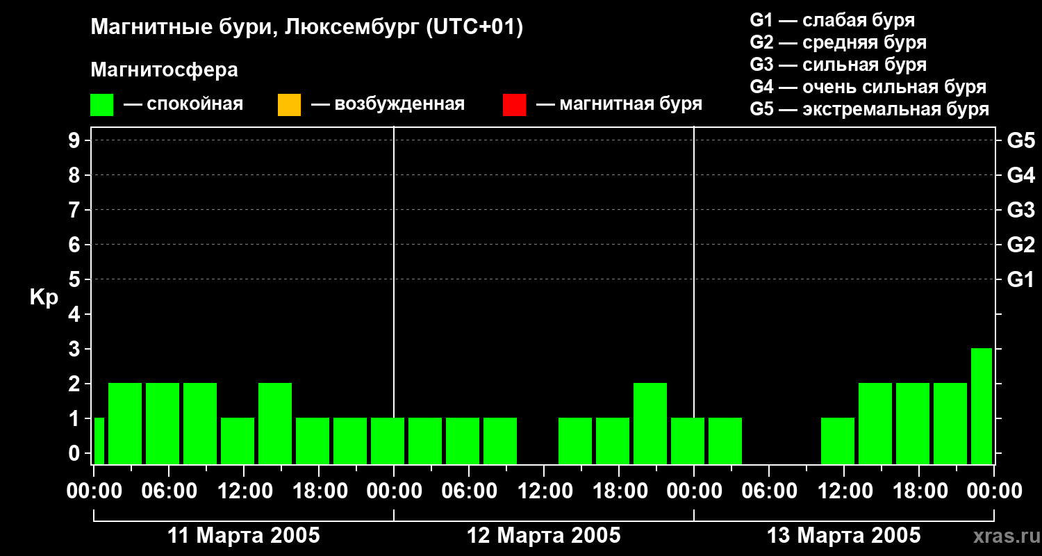 Магнитные бури в Люксембурге 13 марта 2005 года