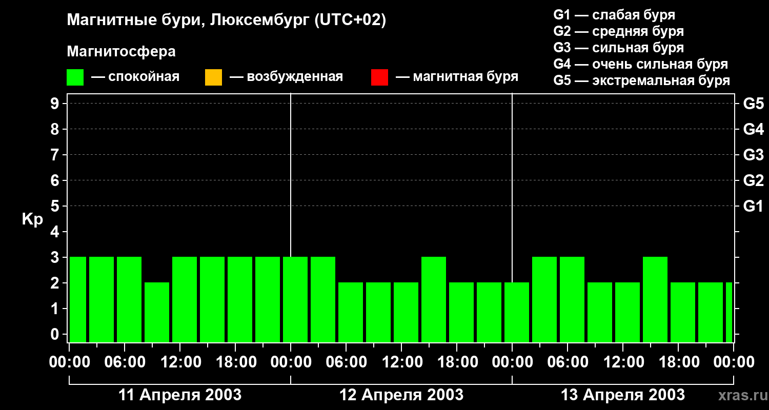 Магнитные бури в Люксембурге — 13 апреля 2003 года