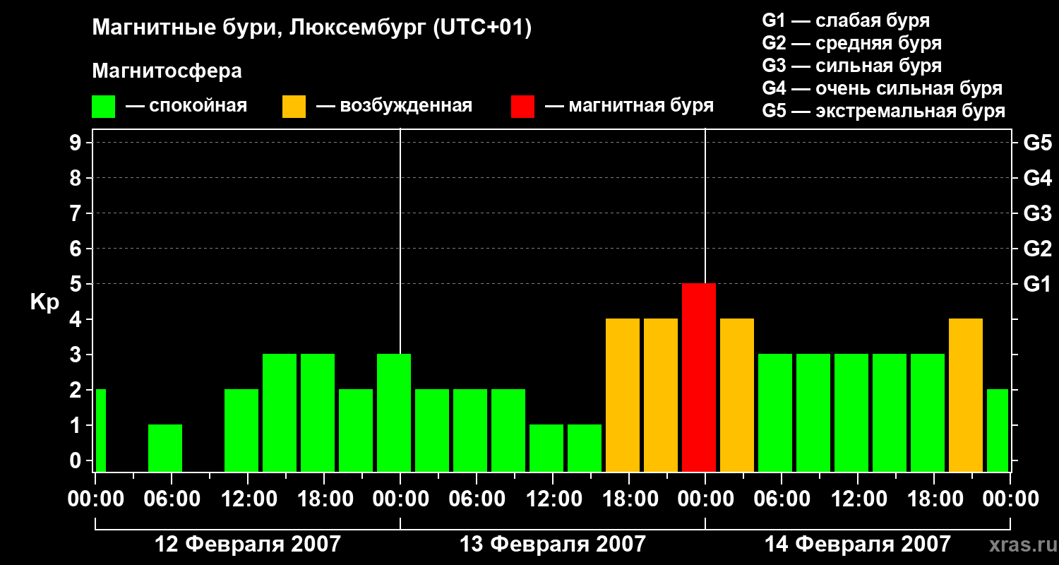 Магнитные бури в Люксембурге — 14 февраля 2007 года
