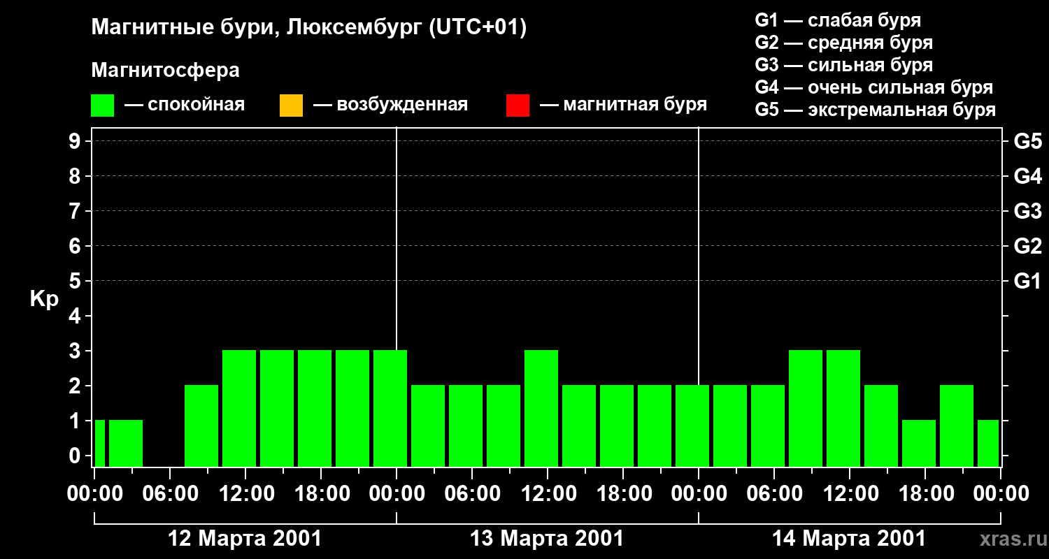 Магнитные бури в Люксембурге 14 марта 2001 года