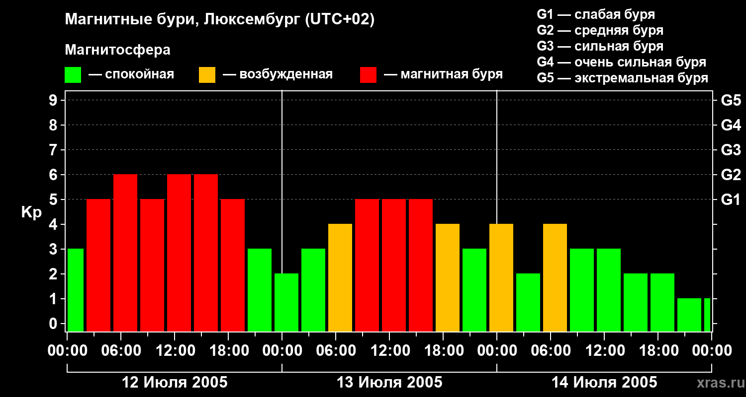 Магнитные бури в Люксембурге — 14 июля 2005 года