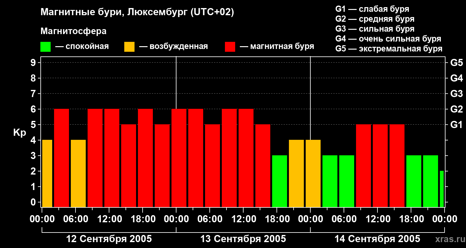 Магнитные бури в Люксембурге — 14 сентября 2005 года