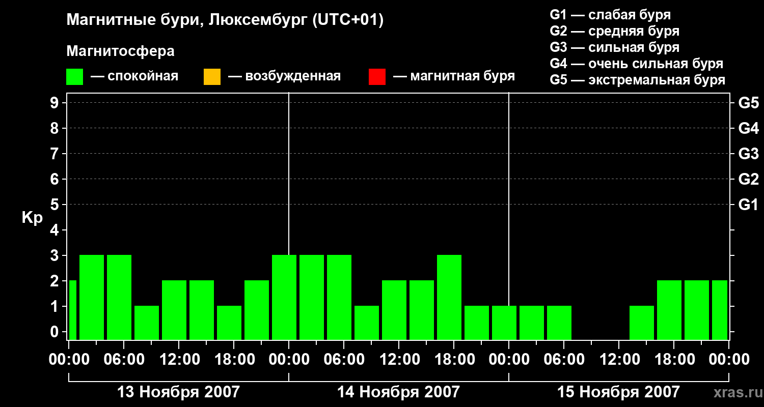Магнитные бури в Люксембурге — 15 ноября 2007 года