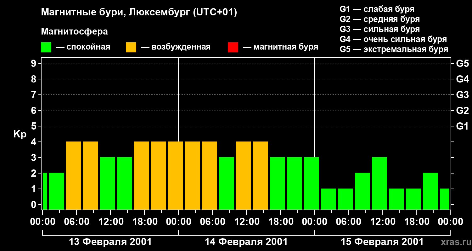 Магнитные бури в Люксембурге 15 февраля 2001 года