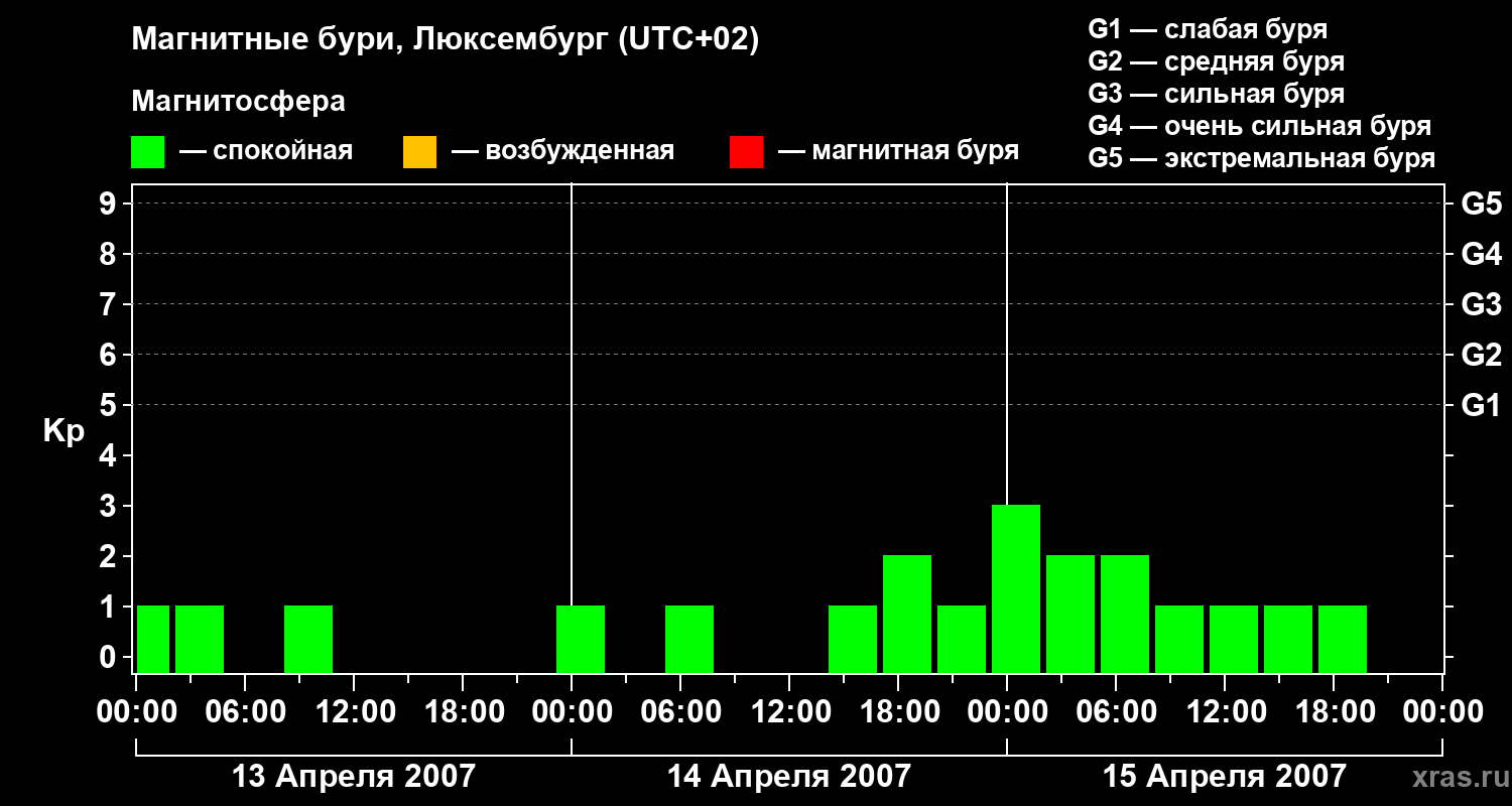 Магнитные бури в Люксембурге — 15 апреля 2007 года