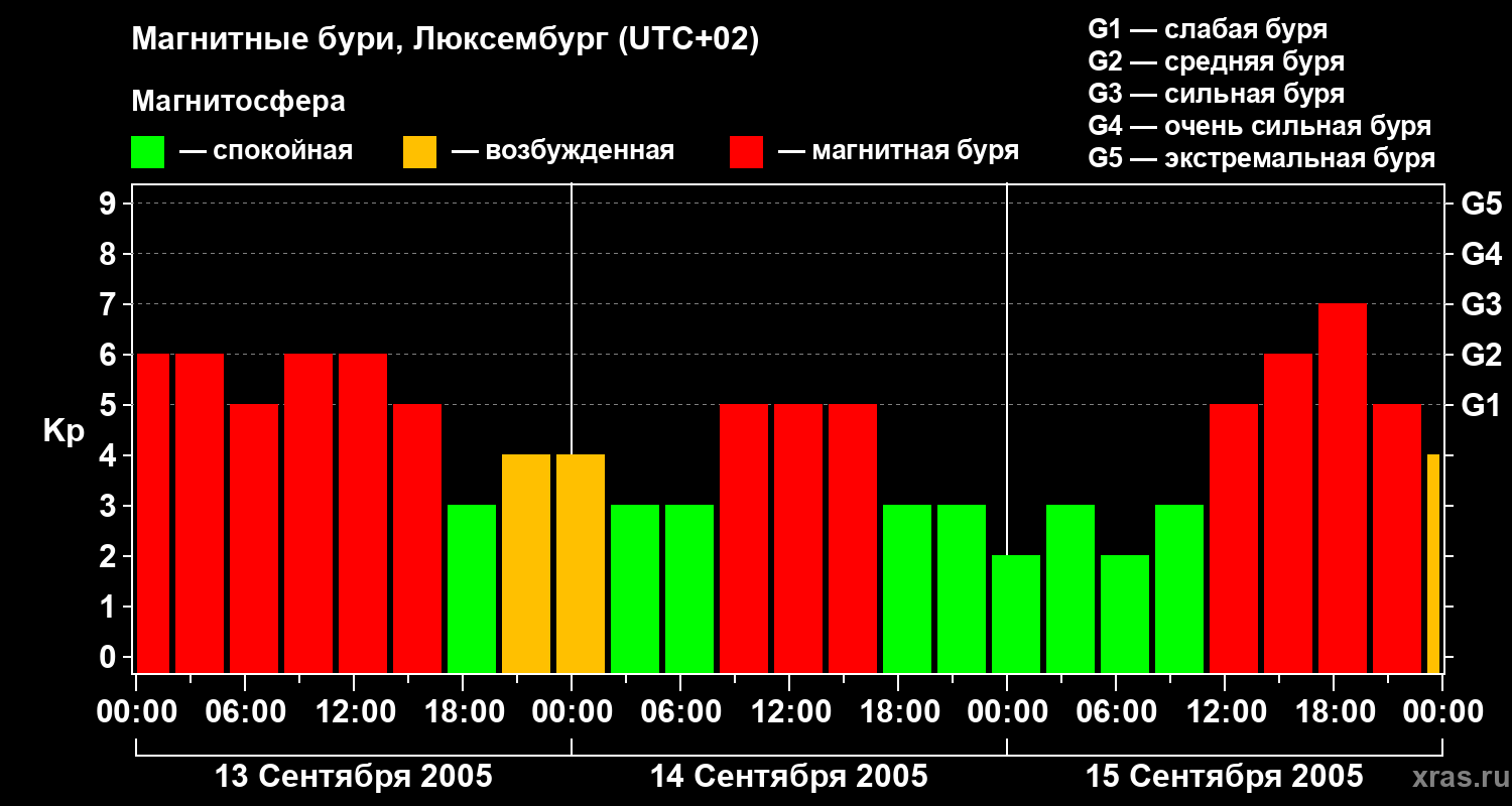 Магнитные бури в Люксембурге — 15 сентября 2005 года
