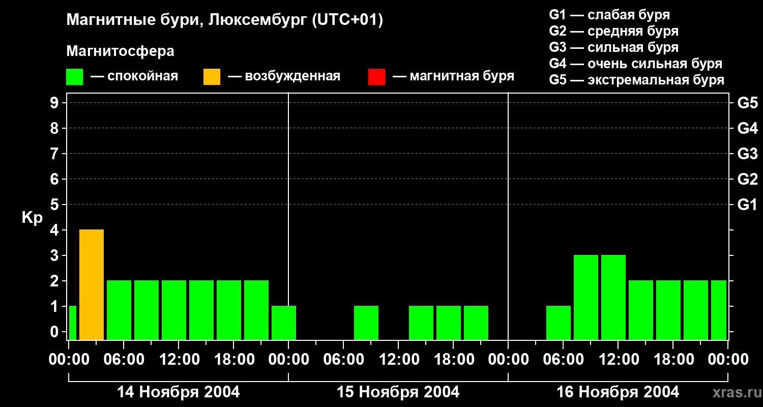 Магнитные бури в Люксембурге — 16 ноября 2004 года