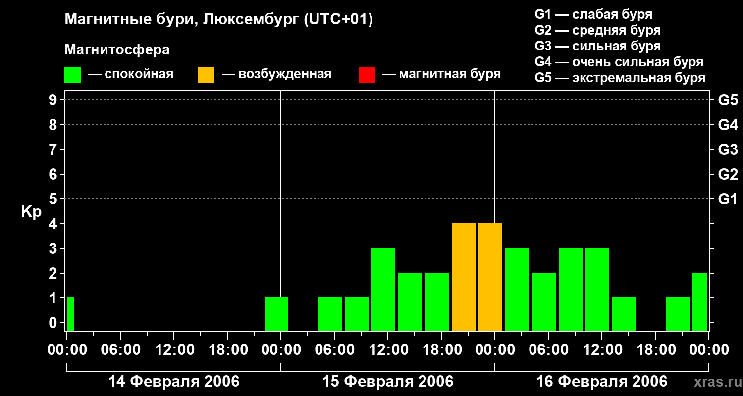 Магнитные бури в Люксембурге 16 февраля 2006 года