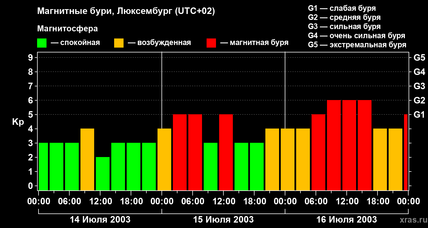 Магнитные бури в Люксембурге — 16 июля 2003 года