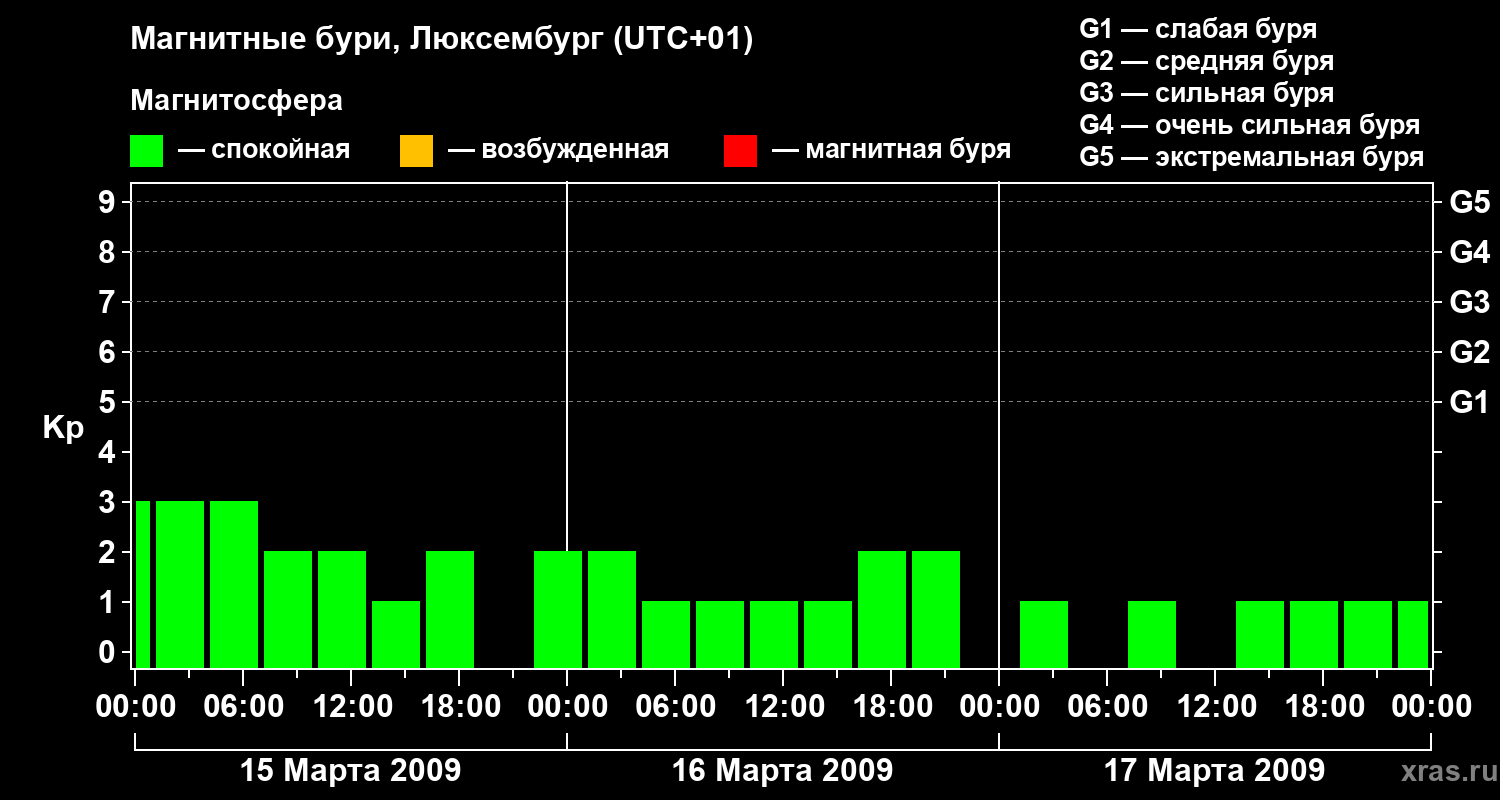 Магнитные бури в Люксембурге — 17 марта 2009 года