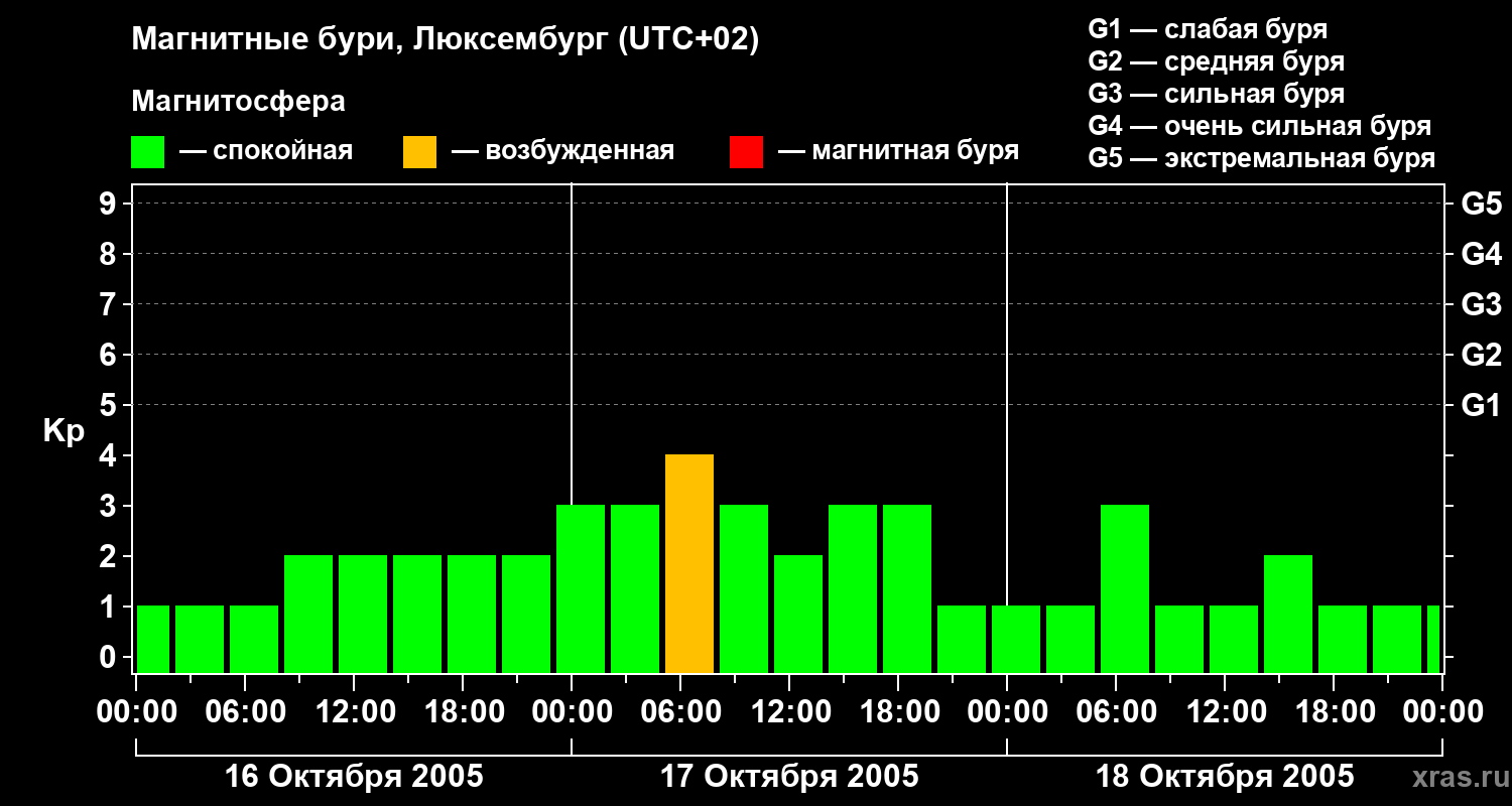 Магнитные бури в Люксембурге 18 октября 2005 года