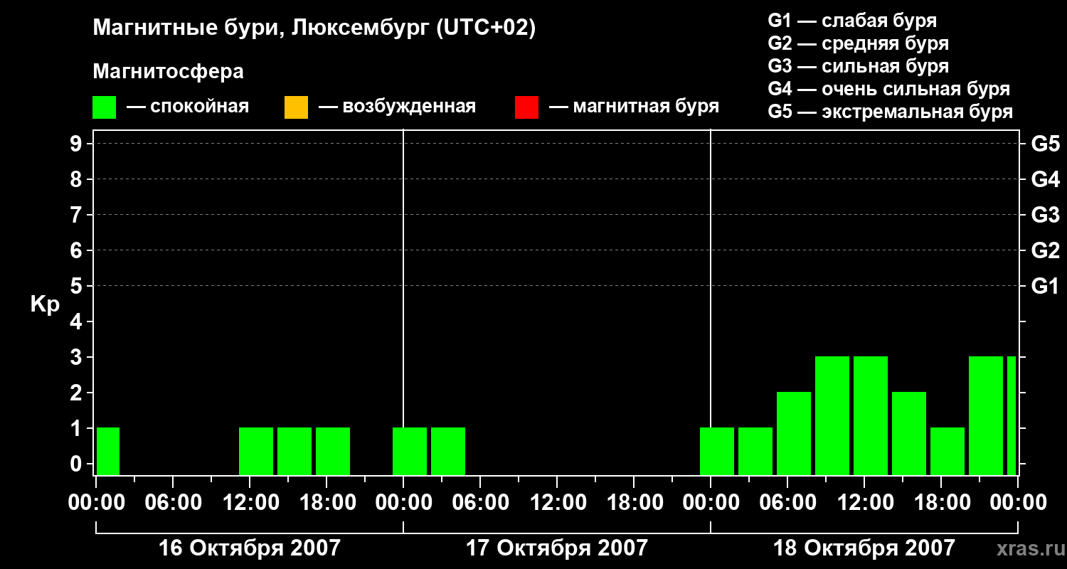 Магнитные бури в Люксембурге — 18 октября 2007 года